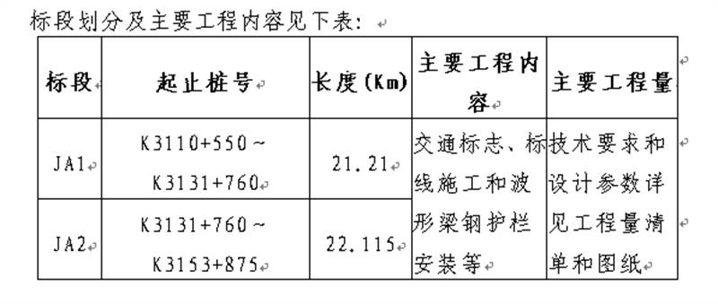 2.2招標(biāo)范圍:本次招標(biāo)范圍為國道351線磽磧至夾金山路面改造工程公路安全設(shè)施施工標(biāo)段招標(biāo),工程內(nèi)容包括:全線交通標(biāo)志、交通標(biāo)線、里程碑、百米樁、公路界碑施工和波形梁鋼護(hù)欄安裝等。