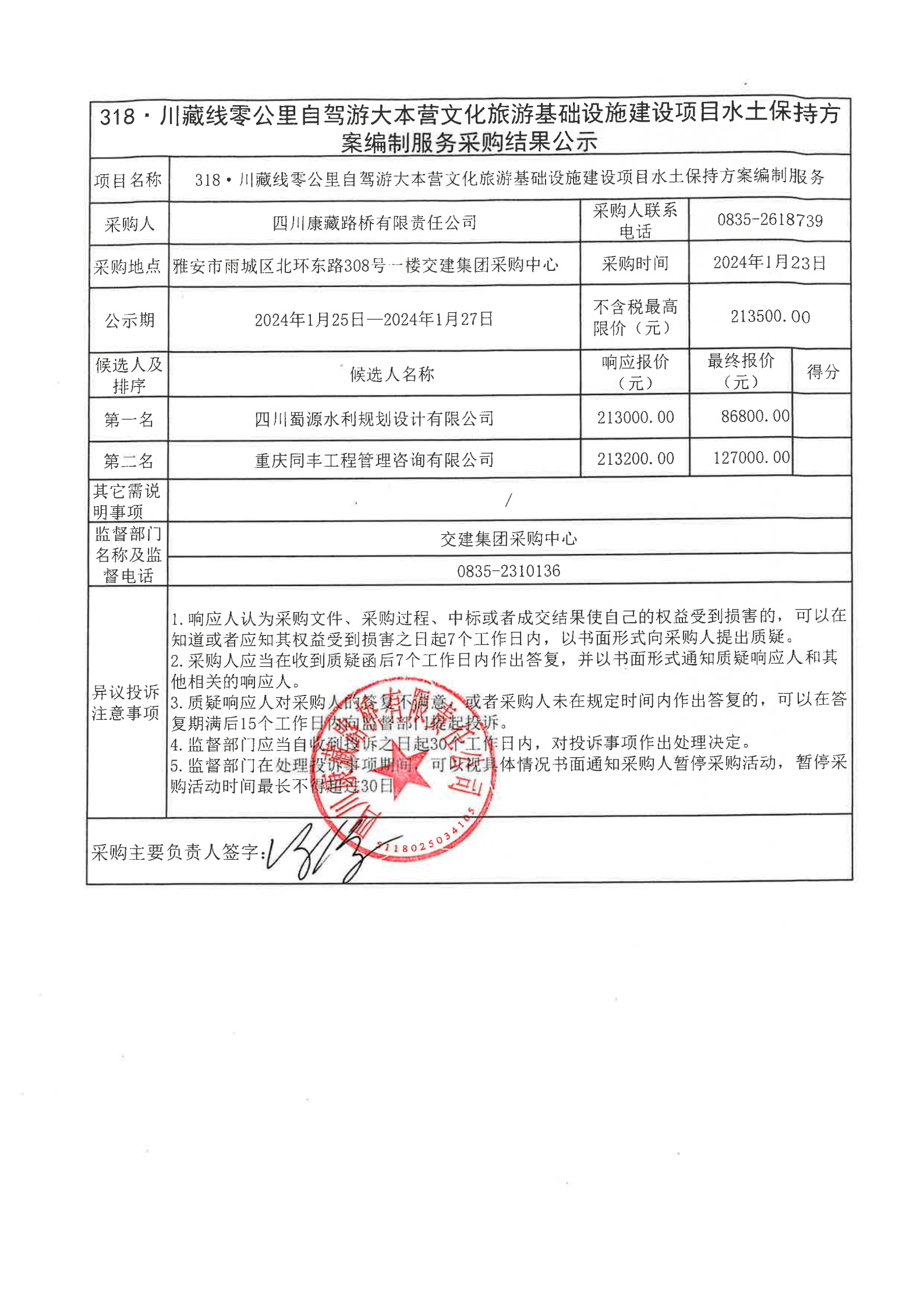 四川康藏路橋有限責(zé)任公司318·川藏線零公里自駕游大本營文化旅游基礎(chǔ)設(shè)施建設(shè)項目水土保持方案編制服務(wù)采購結(jié)果公示